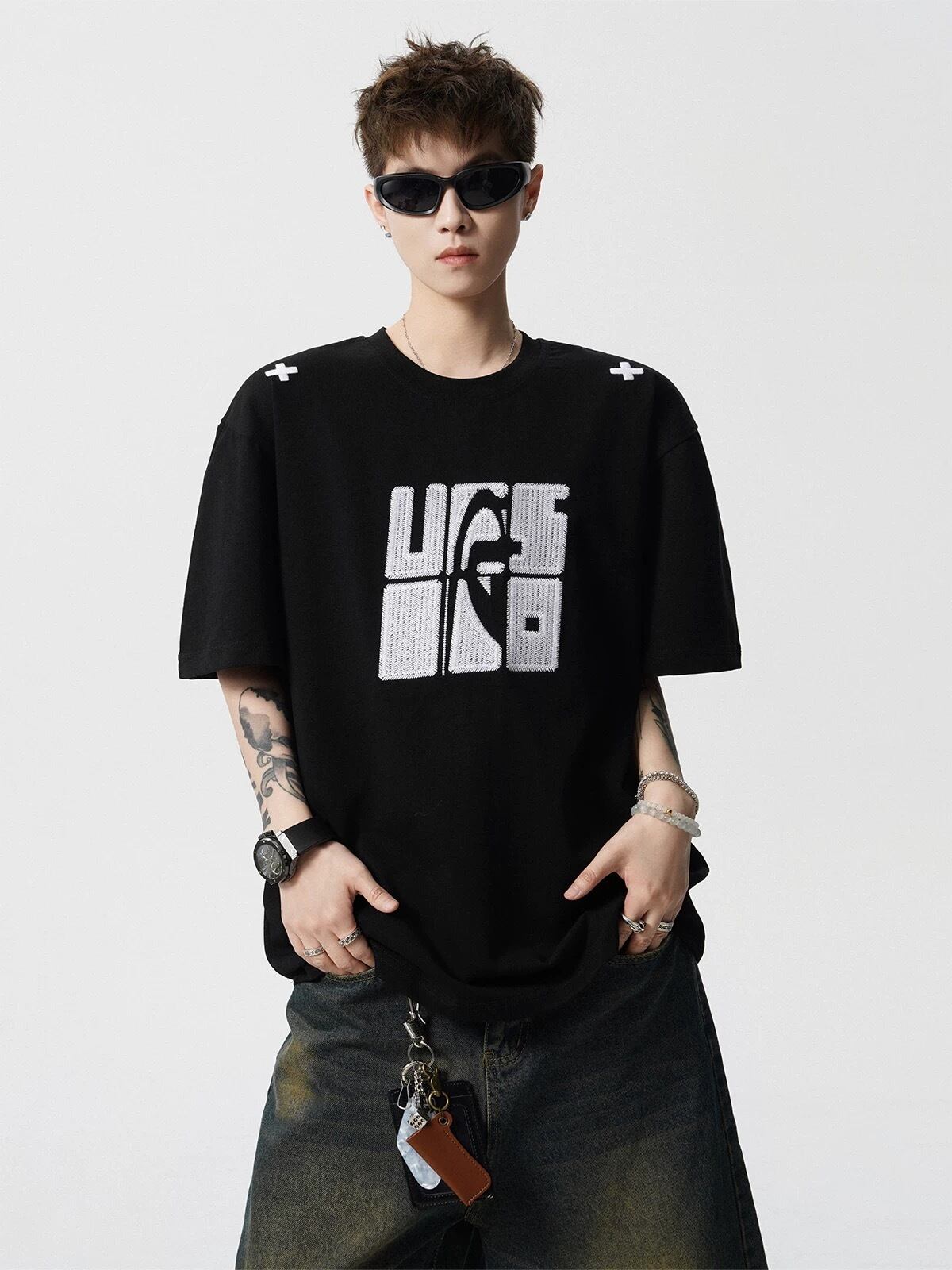【T6】立体刺繍ビッグロゴTシャツ|Y2Kストリート×韓国モード系