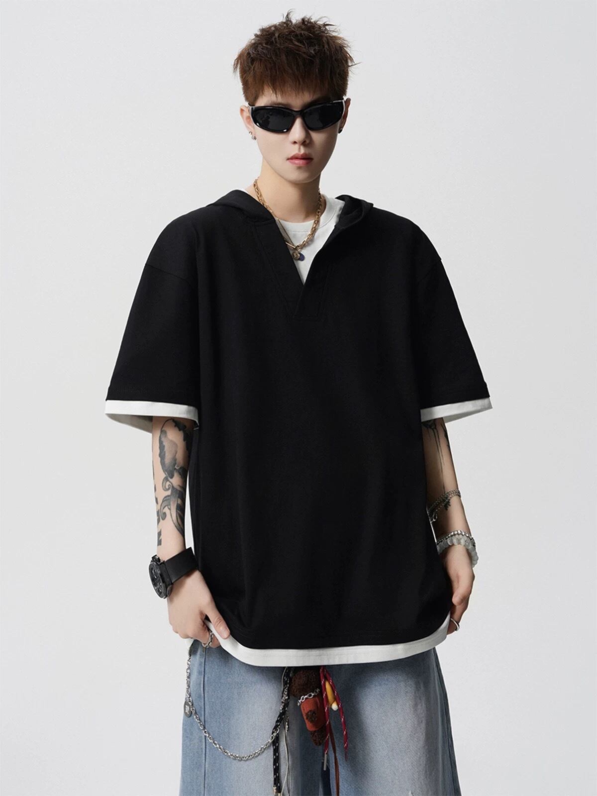 #パーカーTシャツ #重ね着風 #グレートップス #韓国ファッション #ストリートコーデ #ビッグシルエット #ユニセックスファッション #春服 #夏服