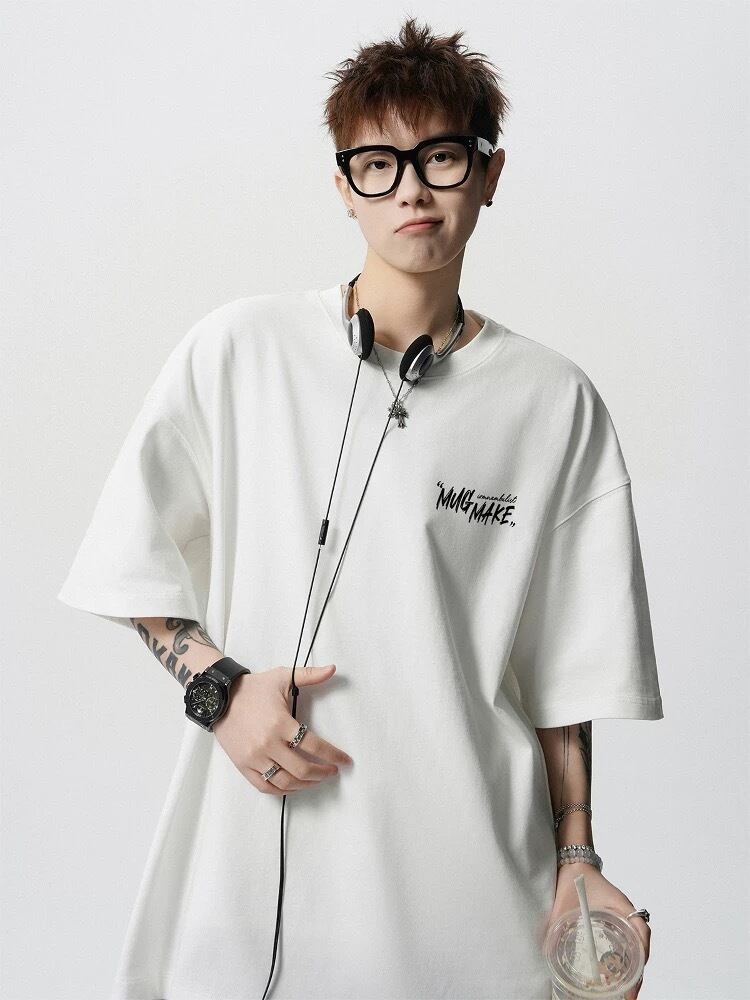 【T11】MUG MAKE バックロゴビッグシルエットTシャツ|ユニセックス 韓国ストリート
