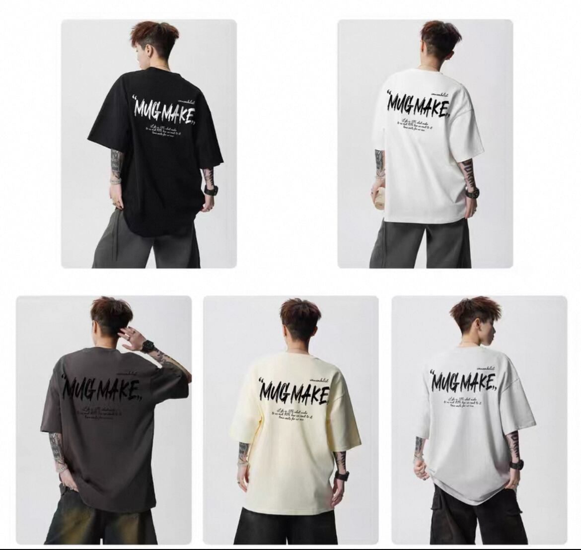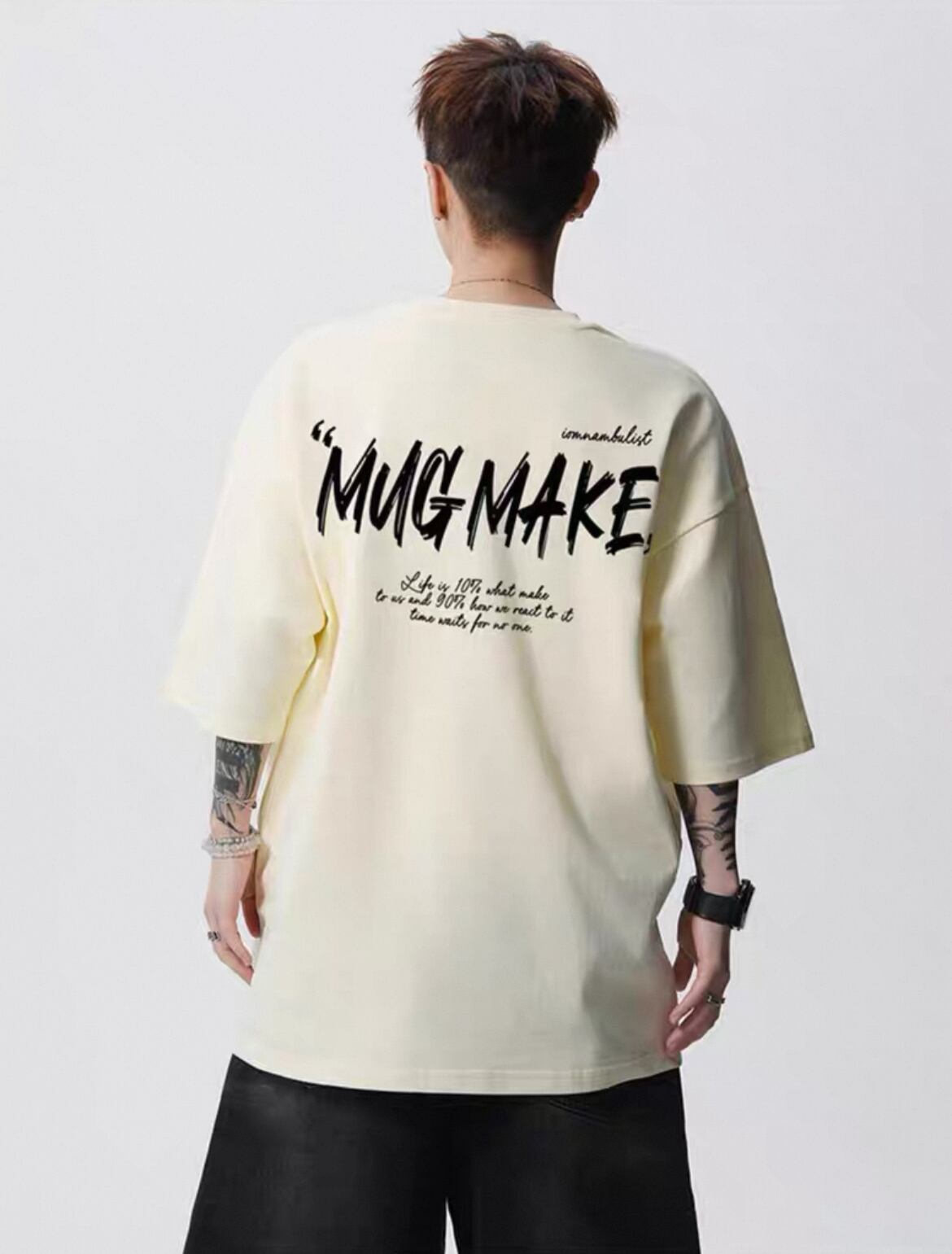 存在感抜群のバックロゴが印象的な「MUG MAKE」デザインのビッグTシャツ。